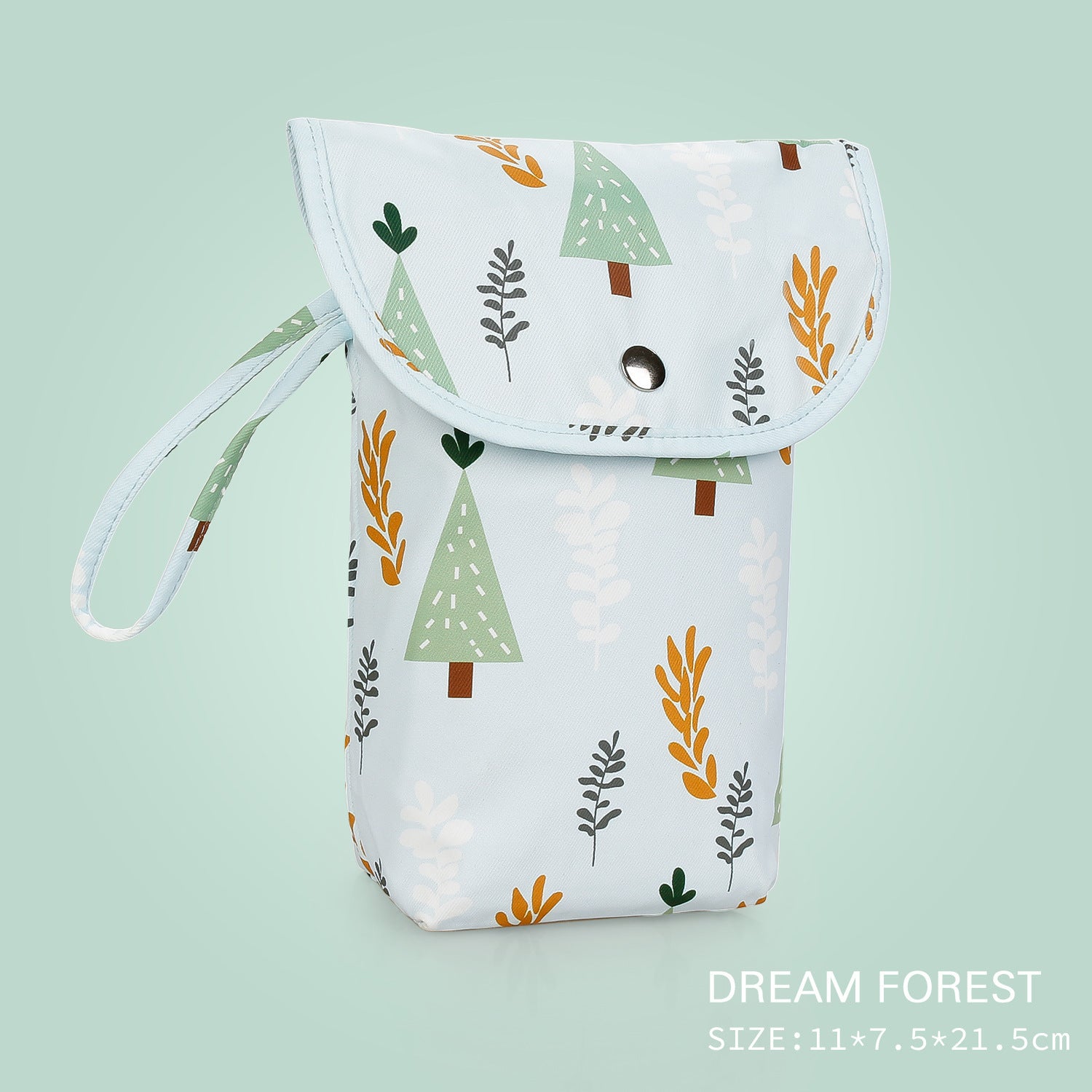 - This compact diaper storage pouch is made from durable Oxford cloth and measures 11 x 7.5 x 21.5 cm. Designed as a handy handbag, it comes in a variety of colors and patterns to suit your style while keeping baby essentials organized and easy to grab on the go.